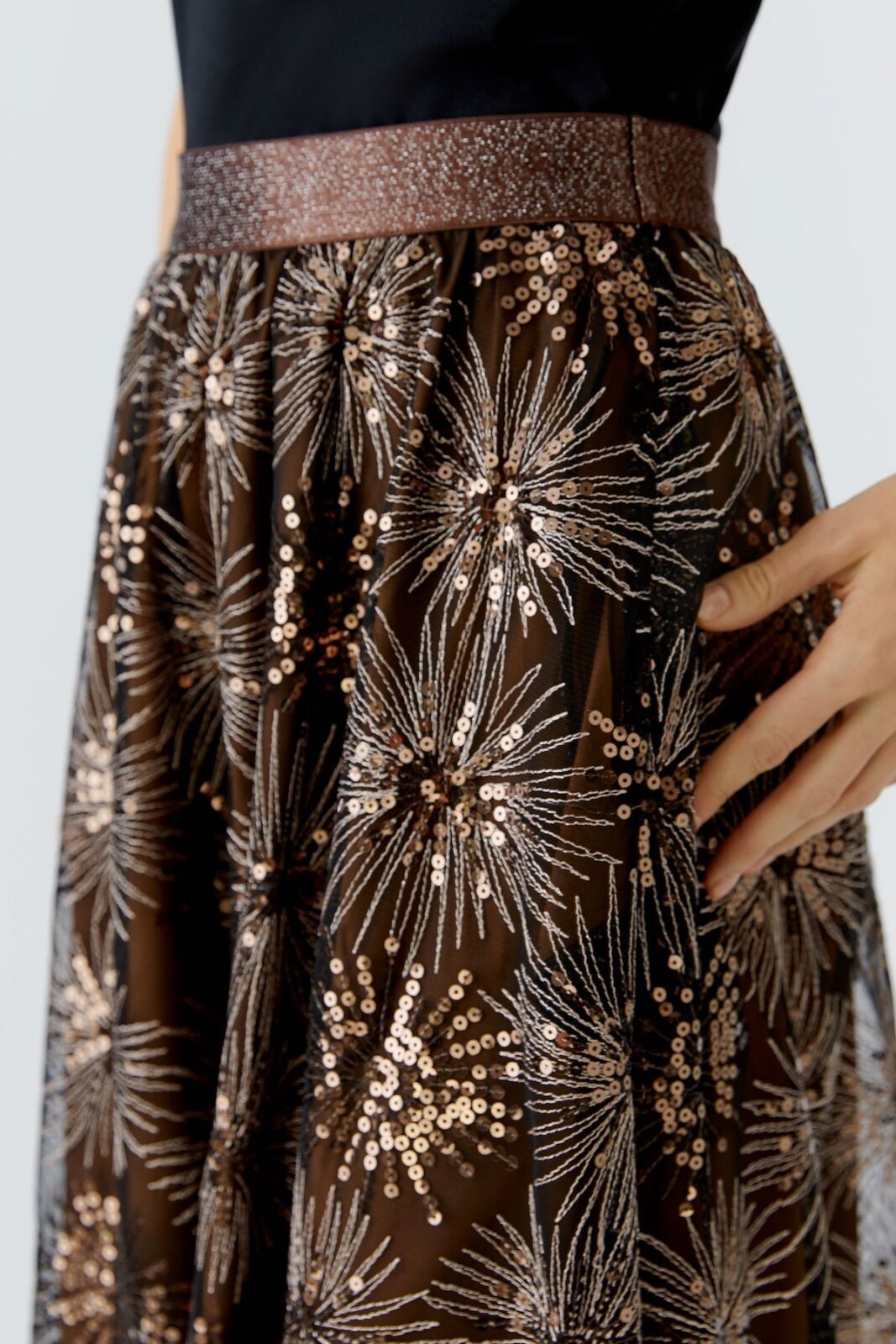 Highlight rok in maxi-lengte – rijkelijk geborduurde motieven met pailletten en contrasterend borduurwerk