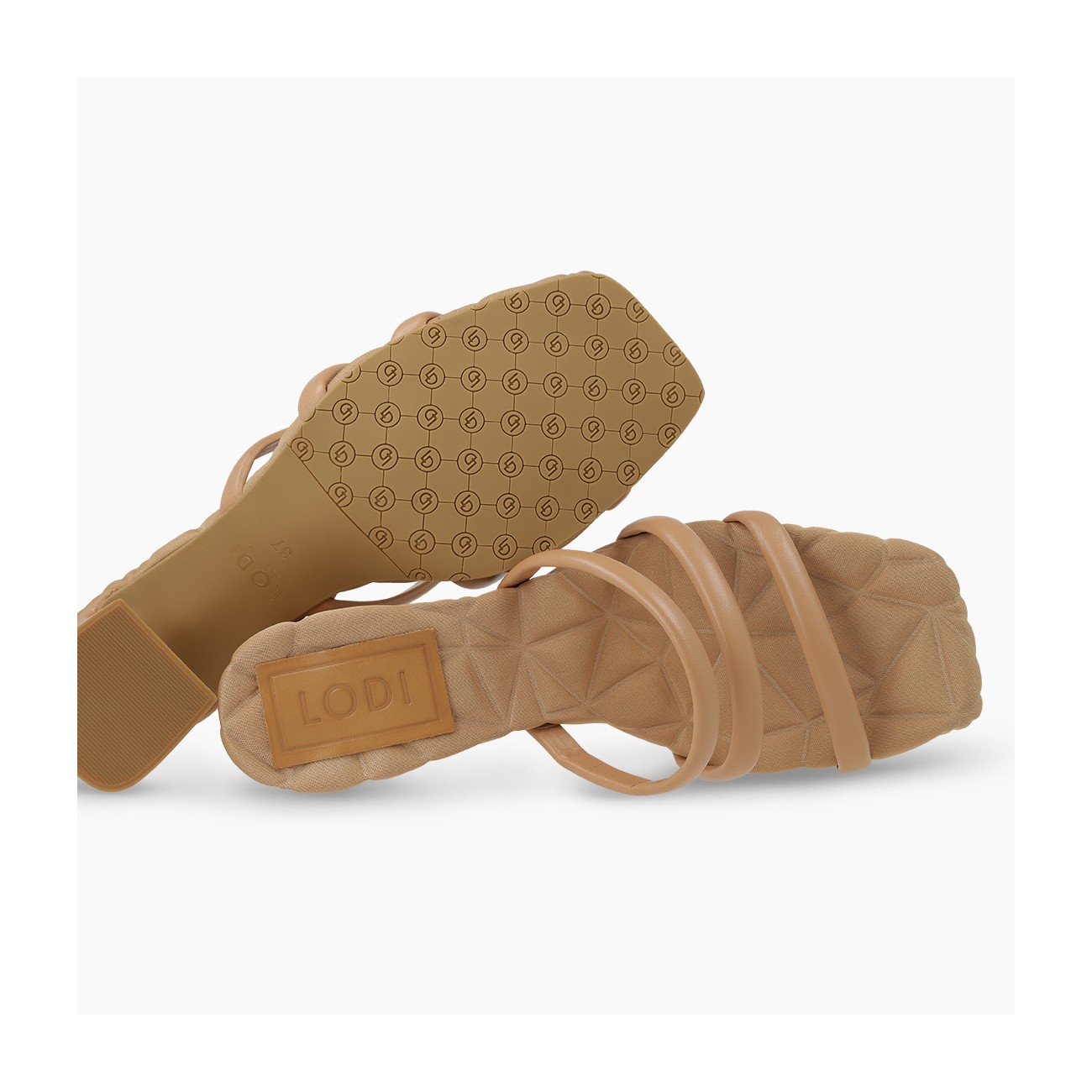 Dames BAOBAB-sandalen van LODI, van leer. Het ontwerp van de wreefband voegt een moderne, vrouwelijke touch toe. Detail van een leren stuk met het merklogo. Gemaakt met een geometrische hak van 7 cm hoog. Vierkante neus. Voetbed gevoerd met structuurstof met driehoekig reliëf. Inclusief een nieuwe gelbinnenzool voor meer comfort bij elke stap. Gemaakt in Spanje.