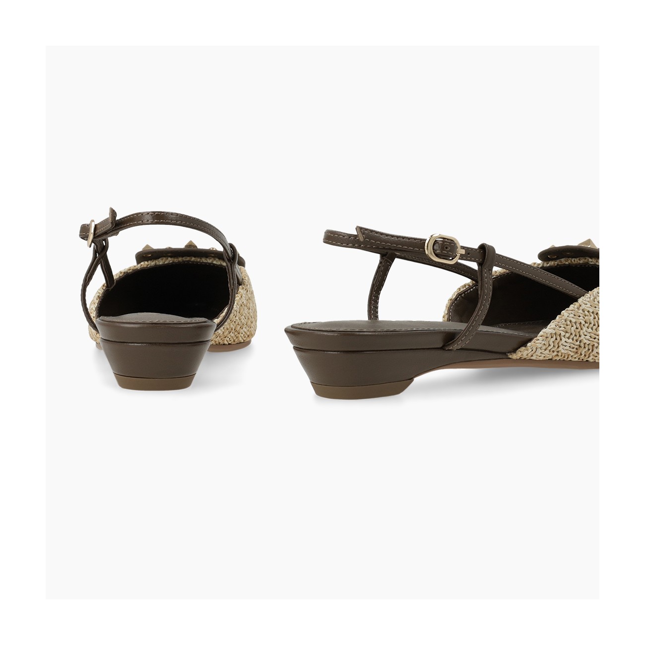 Dames A-COMO slingback schoenen van LODI in leer. Ontwerp met raffia-effect en strass-versiering. Voorzien van een sleehak van 3 cm. Sluiting aan de zijkant met een metalen gesp. Leren voering. Inclusief een nieuwe gel-inlegzool voor extra comfort bij elke stap.