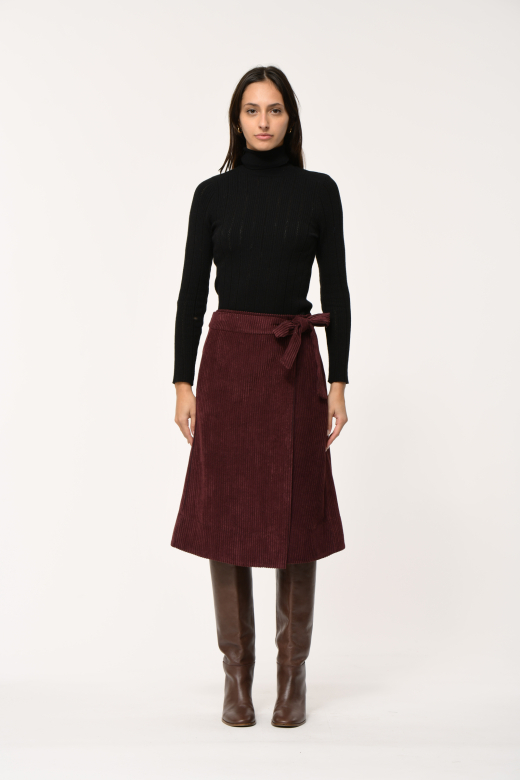 wikkelrok van ribfluweel, lengte tot onder de knie, sluiting met strik