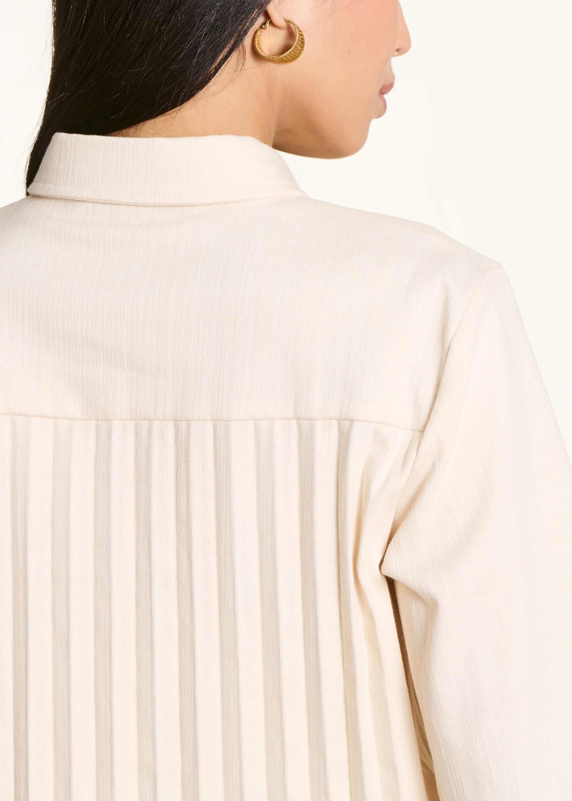 – Achterkant met inzetstuk en geplooide details