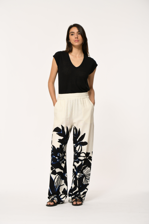 FL-PA-DEMERIS-F 939 ECRU/NOIR Pantalon LA FEE MARABOUTÉE