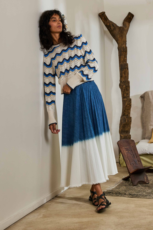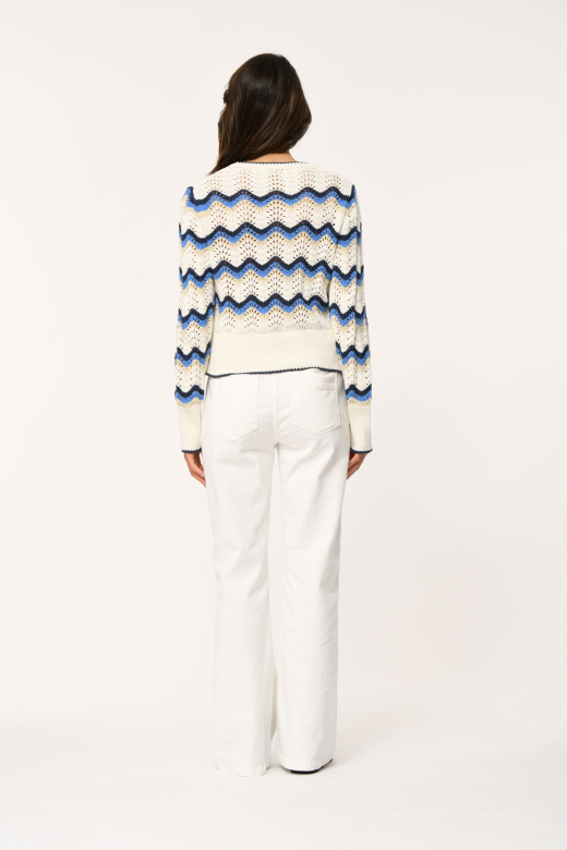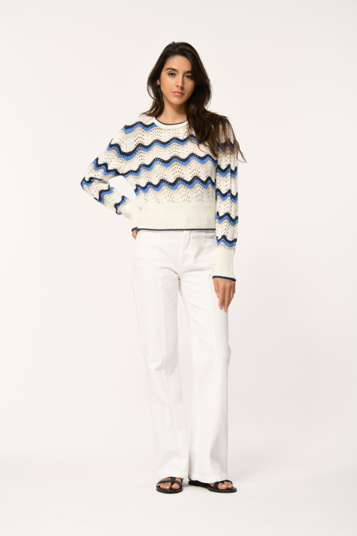 FL-PU-FENUA 839 ECRU / BLEU Pullover LA FEE MARABOUTÉE