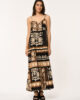 LANGE BOHEMIAN JURK MET ETNISCHE PRINT, DUNNE BANDJES