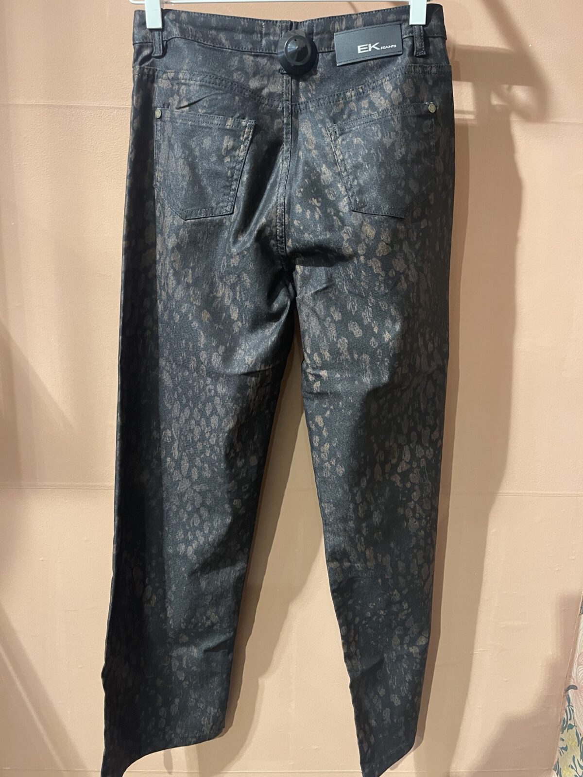 Mooie 5-pocket lengtemaat 30, hoog in de taille, perfecte stretch, uitgevoerd in een subtiele dierenprint. Valt op maat!