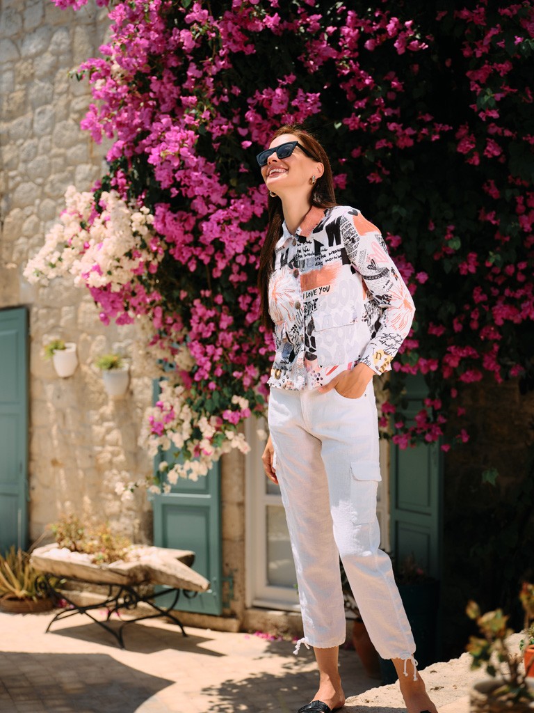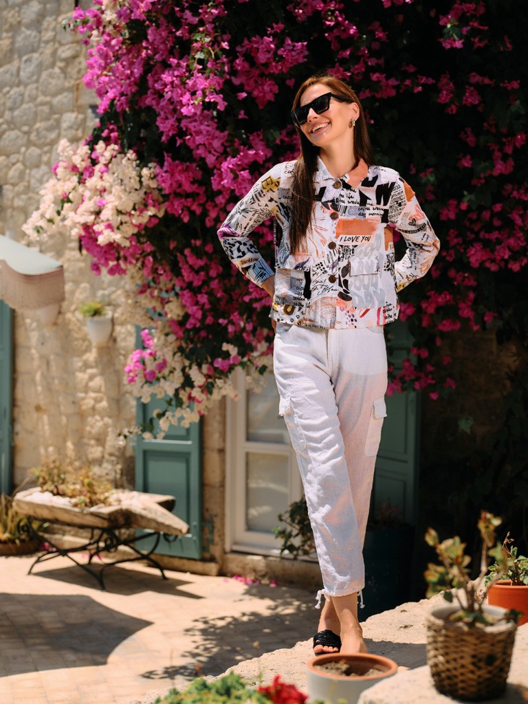 Coffee printed linen JACKET (25652) DOLCEZZA